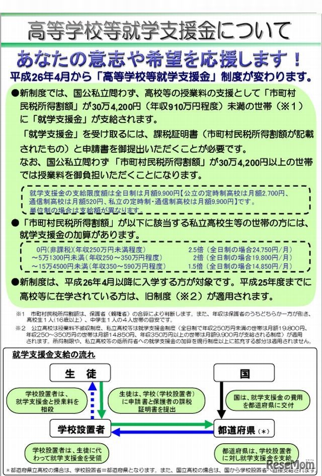 2014年4月からの「就学支援金制度」とは…公立高校無償制度は廃止 1枚目の写真・画像