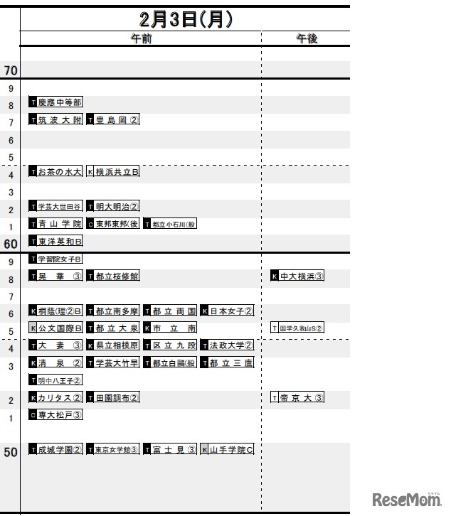 日能研は3月28日、「2014年入試結果R4一覧(首都圏・関西)」をホームページにて公開した。男女別に合格可能性80%ラインを偏差値一覧表に掲載している。