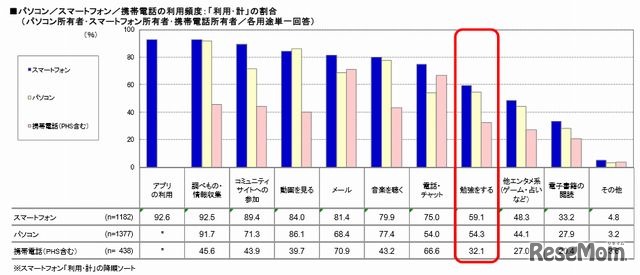 リクルート進学総研は5月23日、「高校生のWEB利用実態調査」の結果を発表した。高校生のスマートフォン所有率は3年前に比べ5.5倍。6割が勉強に活用しており、「スマ勉」が高校生の間に定着しているようだ。