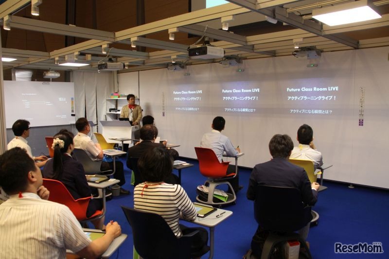 6月5日に始まった「New Education EXPO 2014」の会場に、「フューチャークラスルーム」としてアクティブラーニングやタブレットを使ったグループ学習を体験できる特設ステージがある。