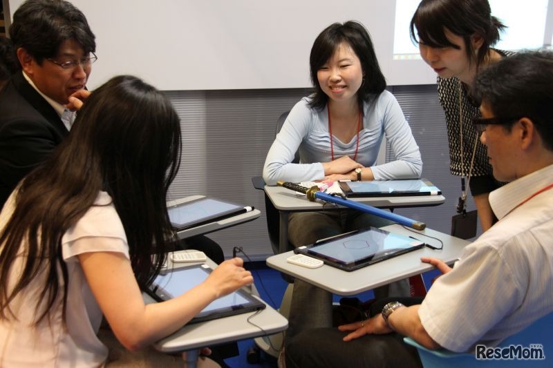 6月5日に始まった「New Education EXPO 2014」の会場に、「フューチャークラスルーム」としてアクティブラーニングやタブレットを使ったグループ学習を体験できる特設ステージがある。