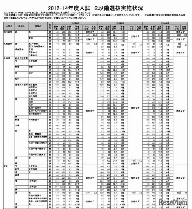 河合塾が提供する大学入試情報サイト「Kei-Net」は6月11日、「国公立大2段階選抜実施状況」を掲載した。2012年度から2014年度まで3年分の情報を一覧にしてまとめている。