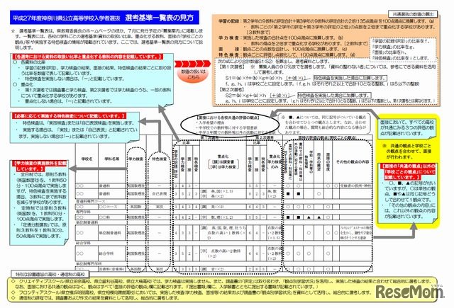 神奈川県は6月10日、平成27年度公立高校入学者選抜選考の基準を公表した。ホームページでは、各校の学科ごとの選考基準や特色検査実施の有無や、面接時の評価観点などが掲載されている。