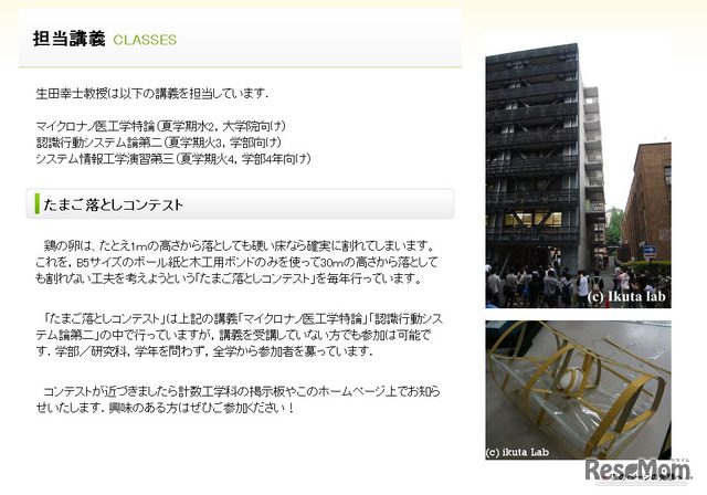 東京大学先端科学技術研究センターは、生田研究室・生田幸士教授による理科教室「たまご落しコンテスト」を6月14日に一般公開する。参加は無料。