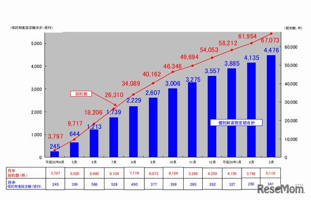 高齢者の金融資産を若い世代に活用してもらおうと、平成25年4月1日より「孫への教育資金非課税措置」が創設されて1年が経過した。信託協会によると、平成26年3月末時点の教育資金贈与信託の契約数は67,073件、信託財産設定額合計は4,476億円にのぼる。