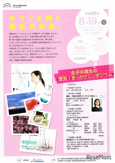 愛知県は8月19日、女子中高生と保護者、教育関係者などを対象とした「女子中高生の理系!きっかけシンポジウム」を開催する。参加は無料、事前申込み制。