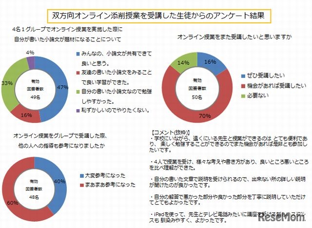 近畿大学附属高等学校は6月25日、iPadを活用した小論文オンライン授業の結果を発表。発表された結果によると、オンラインで対面指導を受けた生徒の方が、小論文に自信をつけた割合が高いことが明らかになった。