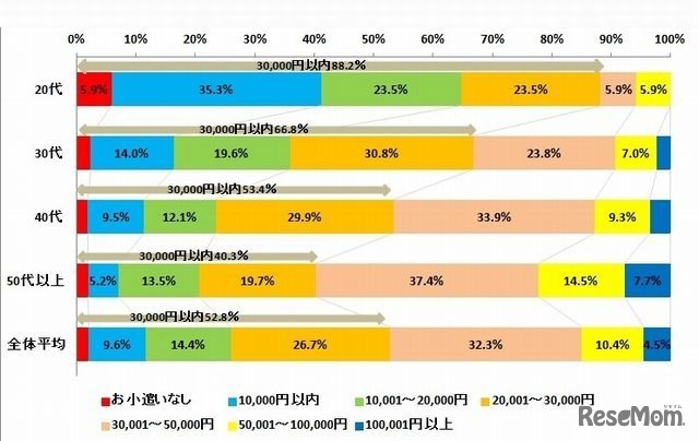 夫のお小遣い平均額は35,686円で前回調査より261円減額し、増税や値上げによる生活費増のしわ寄せが夫のお小遣いに現れていることが、ソフトブレーン・フィールドが7月1日に発表した「夫のお小遣い実態調査」より明らかになった。