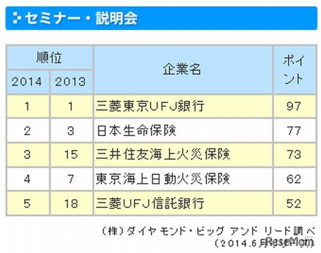 ダイヤモンド・ビッグ&リードは7月1日、大学生が選んだ「新卒採用力ランキング」を発表した。総合ランキング1位は3年連続で「三菱東京UFJ銀行」が1位に輝いた。ホームページやウェブメール、セミナー・説明会、先輩社員・懇親会でも1位だった。