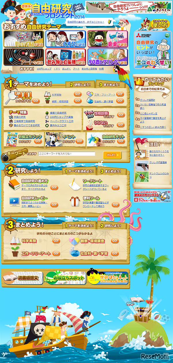 学研教育出版は7月1日、自由研究のテーマを500以上掲載したWebサイト「夏休み自由研究プロジェクト2014」をオープンした。「学年」「かかる期間」「ジャンル」から探すことができる。掲載期間は9月30日まで。
