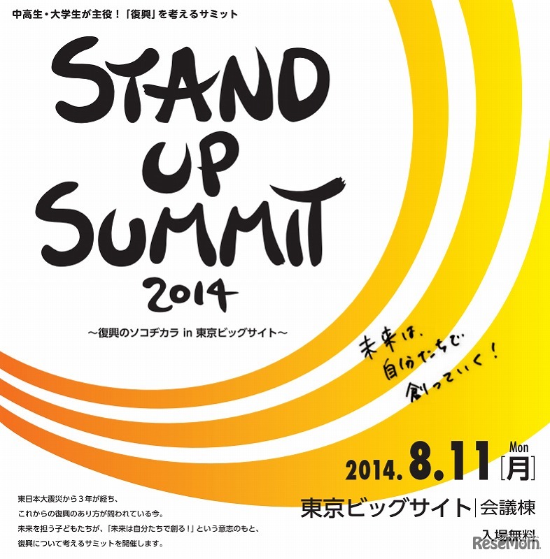 東京ビッグサイトは、若者たちを中心とする各世代参加型の復興支援イベント「STAND UP SUMMIT 2014」を8月11日に開催する。計350名の学生が集い、自分たちのミライと復興のカタチについてプレゼンテーションとディスカッションを展開する。