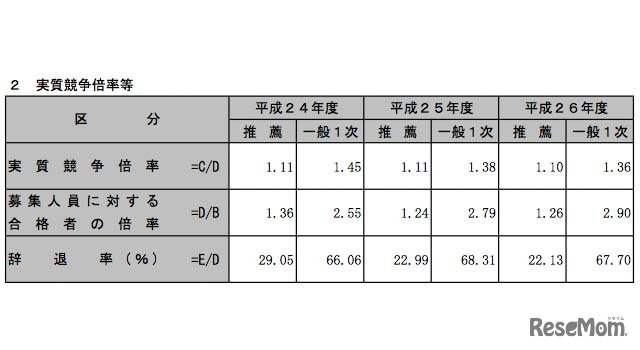 東京都は7月10日、平成26年度の都内私立高等学校(全日制)入学状況について発表した。入学者数は前年度比2.0%増の59,741人で、39.7%が併設中学校からの進学者だった。実質競争倍率は推薦入試で1.10倍、一般1次入試は1.36倍。