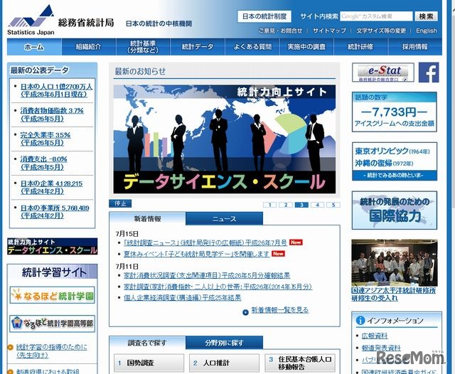 総務省は夏休みイベント「子ども統計局見学デー」を7月28日と30日の2日間、総務省統計局で開催する。対象は小学3年生-6年生で、統計データを使用して夏休みの自由研究をまとめるほか、統計局内部の見学ツアーも行う。