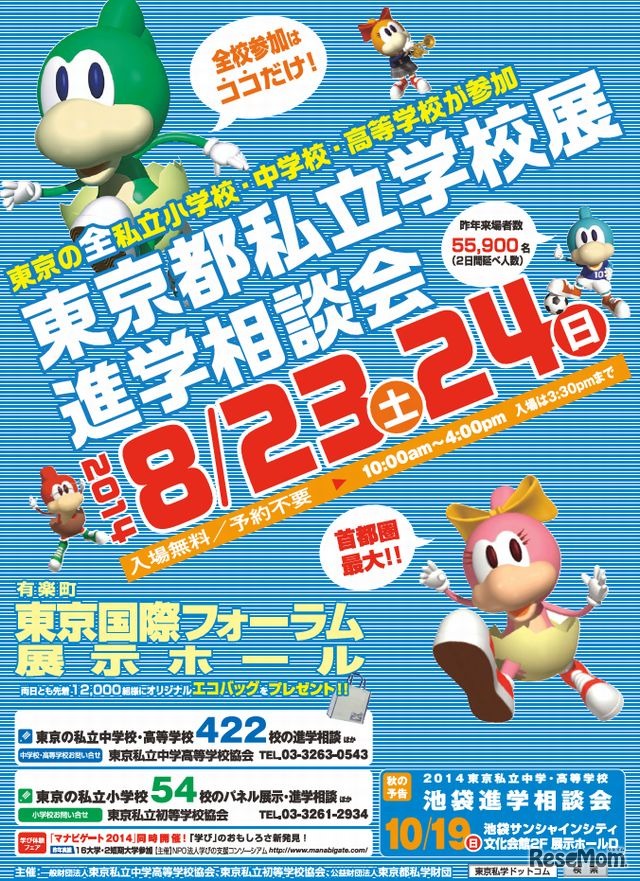 学びの支援コンソーシアムは8月23日(土)と24日(日)の2日間、学び体験フェア「マナビゲート2014」を東京国際フォーラムで開催する。今年は慶応義塾大学や早稲田大学など17大学が出展予定。当日は東京都私立学校展も同時開催する。