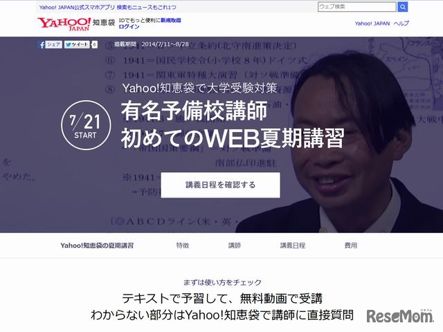 ヤフー知恵袋で受験対策、有名講師による初めてのWEB夏期講習