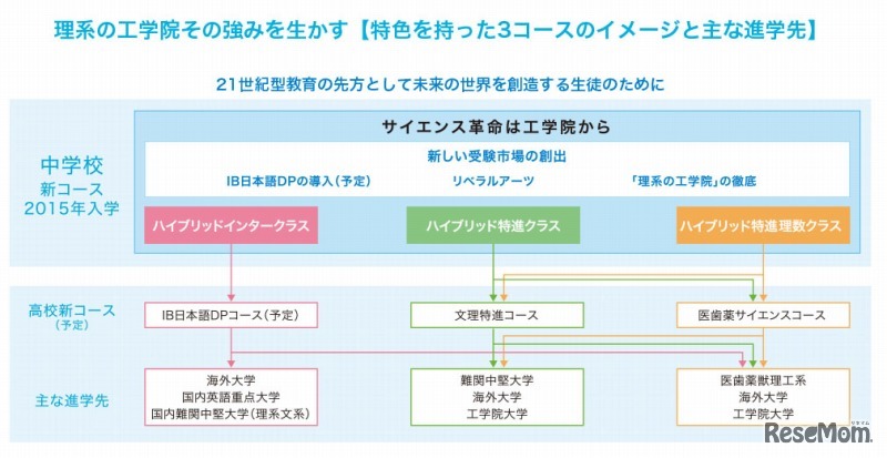 工学院大学附属中学校は、2015年4月より併設型中高一貫校として、21世紀型教育(G.I.L)を推進する教育機関として新たにスタートすると発表した。海外大学への進学を目指すクラスや、理科と数学に重点を置くクラスなどを開設する。