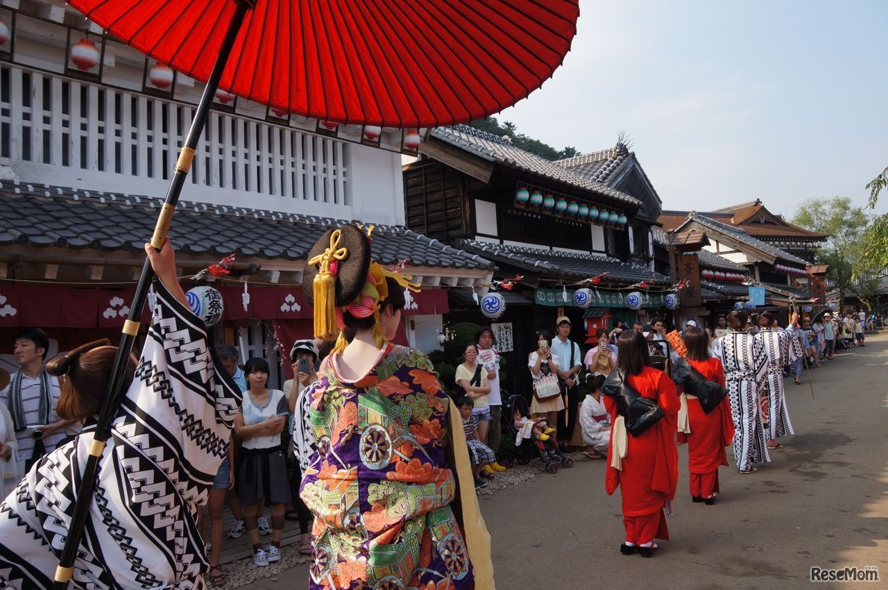 江戸村の町内では、当時を再現したイベントが繰り広げられる