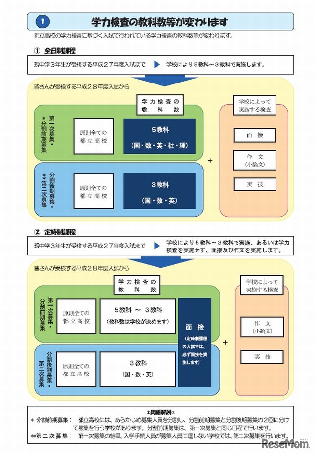 東京都教育委員会は、平成28年度都立高校入学者選抜からの制度改善に関するリーフレットを作成した。対象になる都内公立中学校の2年生に配布しているが、ホームページでも見ることができる。