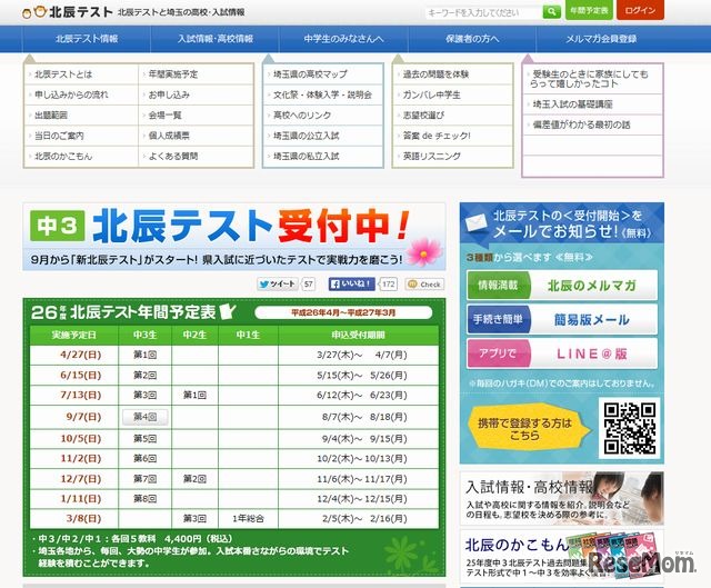 埼玉県の中学生を対象にした北辰テストは、9月実施のテストから時間割やテスト内容を変更し、入試に近い形で実施する。各教科の試験時間や問題の質や量も入試と同様にしたことから、受験を想定することができる。テストは9月7日実施、申込みは8月18日まで。