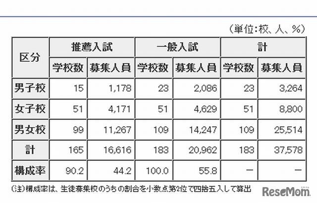 東京都は10月2日、都内私立高校の平成27(2015)年度入学者選抜実施要項をとりまとめて発表した。全日制課程183校で37,578人募集する。一般入試の選抜は、平成27年2月10日(火)以降に実施する。