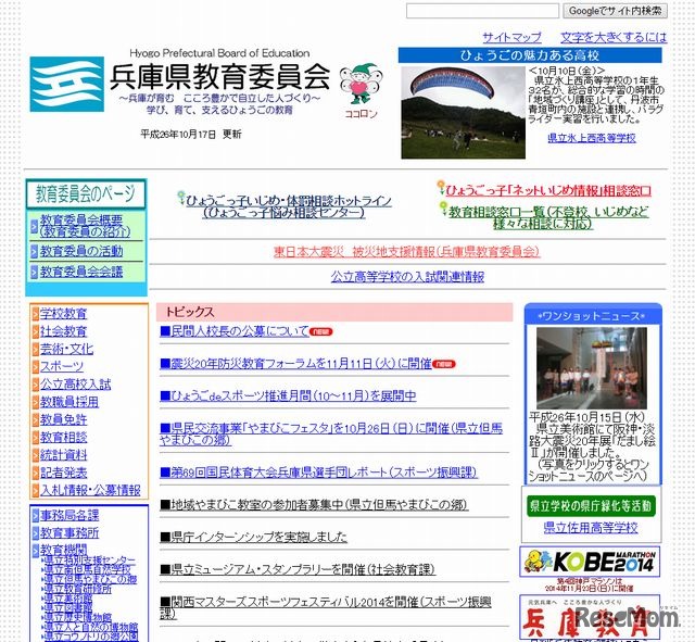 兵庫県教育委員会は10月17日、民間人校長の公募について発表した。県立高等学校長1名を平成27年4月1日付けで任期付職員として採用する。公募期間は10月30日~12月10日。国際系学科等を設置する県立学校に民間校長を配置する。