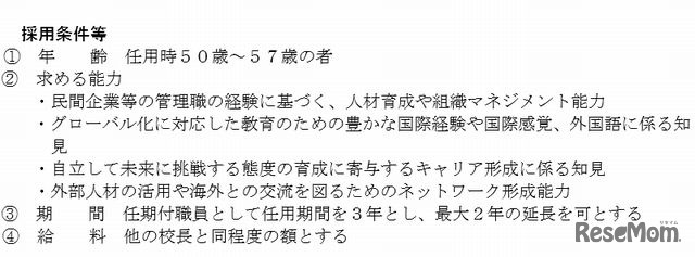兵庫県教育委員会は10月17日、民間人校長の公募について発表した。県立高等学校長1名を平成27年4月1日付けで任期付職員として採用する。公募期間は10月30日~12月10日。国際系学科等を設置する県立学校に民間校長を配置する。