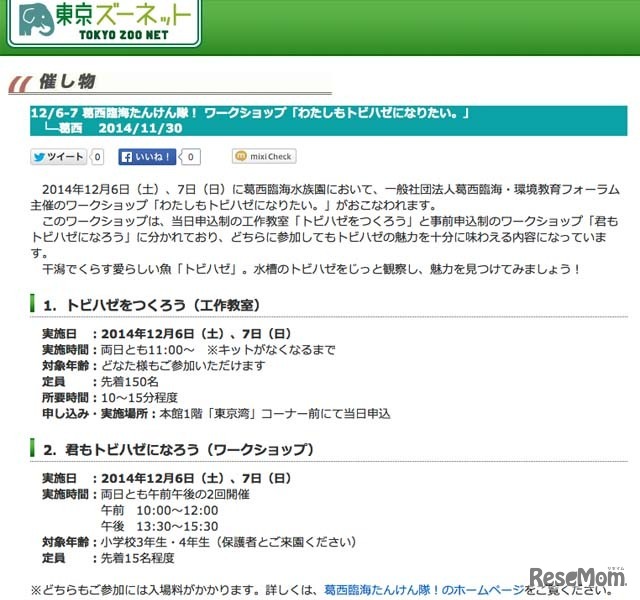 葛西臨海水族園は12月に「葛西臨海たんけん隊!」、1月に「冬のくらべんじゃー」を開催する。また、同園では12月1日から28日の期間、スマートフォンアプリを使った解説サービスの実証実験を行っている。