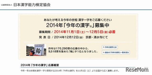 日本漢字能力検定協会は「今年の漢字」20周年を記念し、歴代の「今年の漢字」を展示する「漢字が表す20年の世相展」を京都・清水寺の経堂で12月1日(月)より12月26日(金)まで開催する。観覧料は無料。