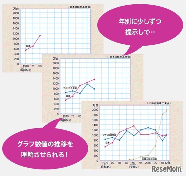 年別に少しずつ、数値の変化を提示する
