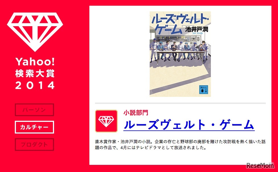 Yahoo !は、2013年と比較し検索数がもっとも急上昇した人物、作品、製品を発表する「Yahoo!検索大賞2014」を発表した。大賞の発表は、今回が初めて。2014年1月1日から11月1日までの間の検索数が集計され、集計期間内の1日あたりの平均検索数から選出された。