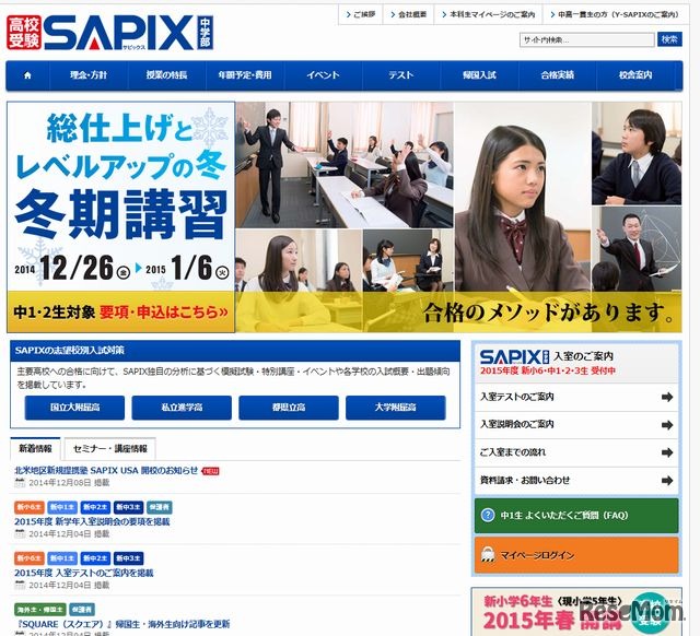 SAPIXは米国に新規提携塾「SAPIX USA」を来年2月に開校することになった。1月中旬にも現地で開校説明会を開催する。小学部、中学部、高校部、個別授業のクラスを設け、日本のSAPIXによるバックアップと講師陣による双方向授業が行われる。