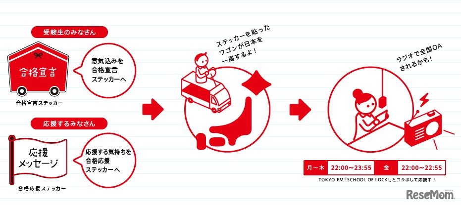 ベネッセコーポレーションは、高校・大学受験を応援する「受験生全力応援プロジェクト」として「2015 日本一周!合格WAGON」を12月26日にスタート。各地で受験生の合格宣言や受験生への応援メッセージを集め、合格祈願をしながら日本を一周する。