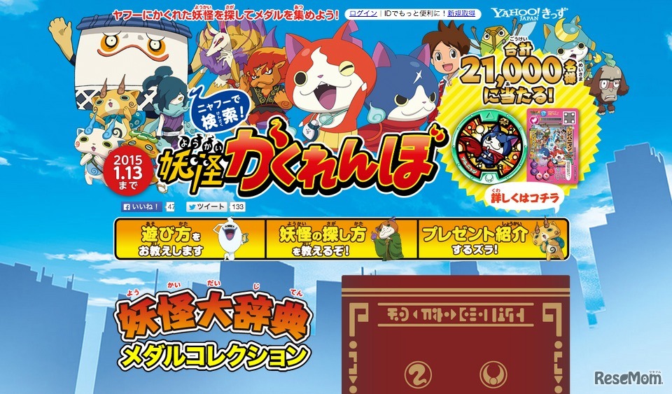 ヤフーは、「映画 妖怪ウォッチ 誕生の秘密だニャン!」の公開を記念し、妖怪ウォッチとコラボした、Yahoo! JAPANの13サービス上で行う「妖怪かくれんぼ」を12月19日より開始した。