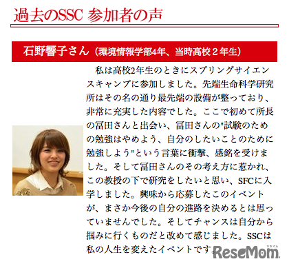 サイエンスキャンプ過去の参加者の声