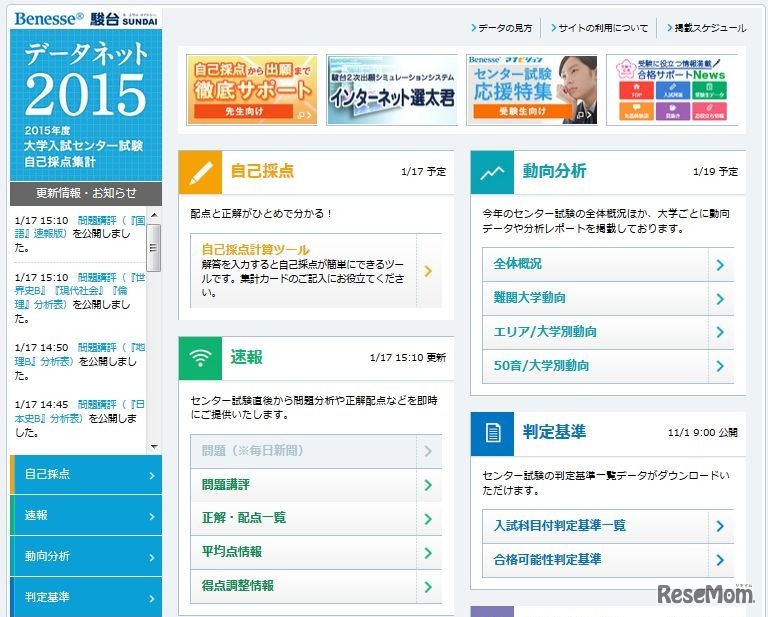 ベネッセ・駿台データネットは、2015年度センター試験問題のうち国語の問題講評を開始した。全体概況として、大問数・解答数は昨年から変更なかったという。4大問とも、文章の構成・構造を問う設問は出題されなかったようだ。