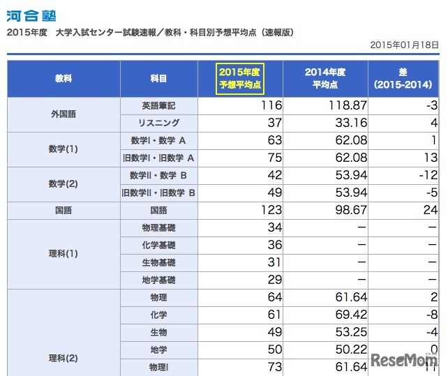 【センター試験2015】ベネッセ・駿台、河合塾が予想平均点速報を公開 2枚目の写真・画像