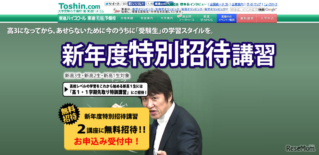 東進ハイスクールは、最大2講座まで無料で体験できる「新年度特別招待講習」を実施する。1講座には、90分×5回の授業および講座修了判定テストなどが含まれており、2講座受講した場合は最大10回分相当の授業がる受けることができるという。