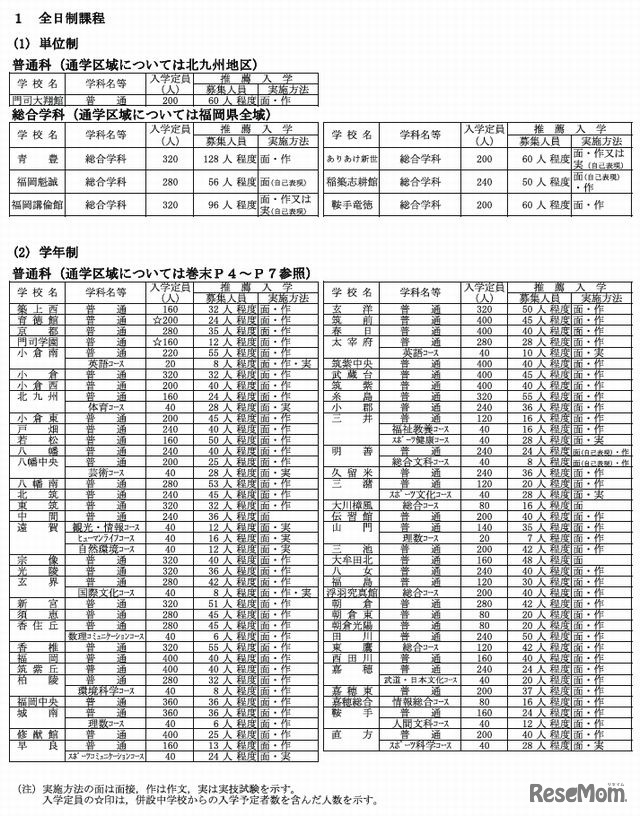 福岡県は平成27(2015)年度公立高等学校入学者選抜(全日制)において、前年より560人減の2万5,840人募集する。門司大翔館(普通)や小倉(普通)、小倉南(普通)、小倉西(普通)など14校でそれぞれ40人募集人員を減らす。