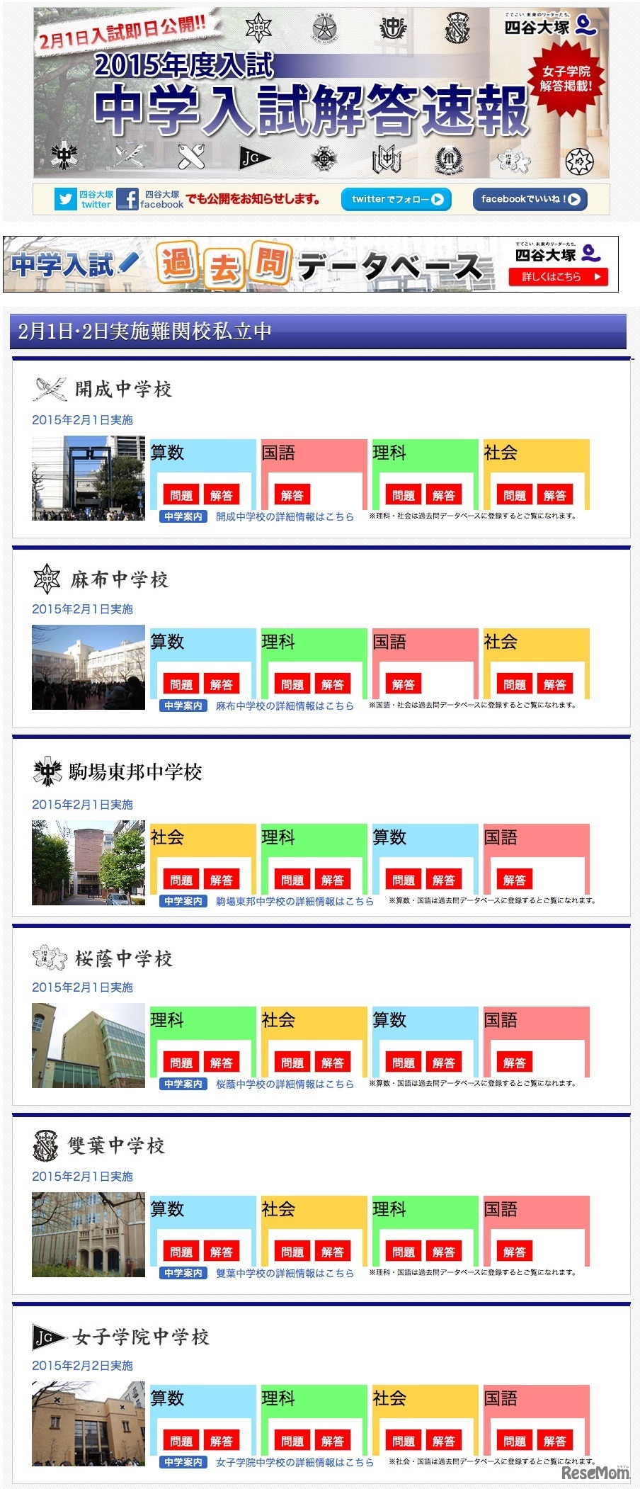 四谷大塚は特設Webページ「2026年度入試 中学入試解答速報」…