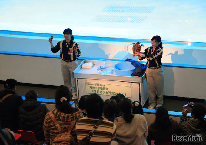 鴨川シーワールドでは、2月14日(土)・15日(日)・21日(土)・22日(日)の4日間限定で、特別レクチャー「ウミガメの保護活動」を開催する。鴨川で生まれた子ガメについてのレクチャーを受けるほか、実際に子ガメに触れる体験ができる。