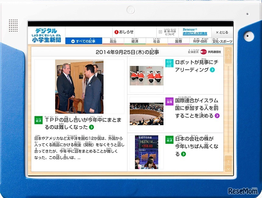 ベネッセコーポレーションは2月10日、進研ゼミ小学講座チャレンジタッチの受講者を対象に、オプションサービスとして「デジタル小学生新聞」の提供を開始すると発表した。
