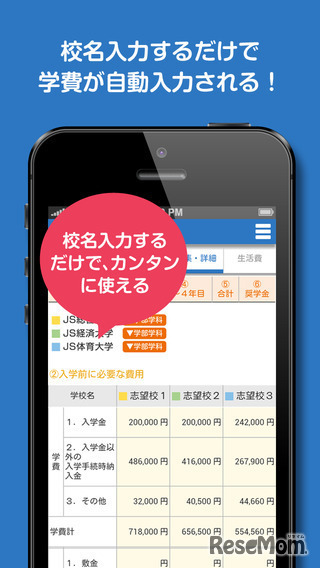 大学の学費が一目でわかる「学費シミュレーション」アプリ無料配信 1枚目の写真・画像