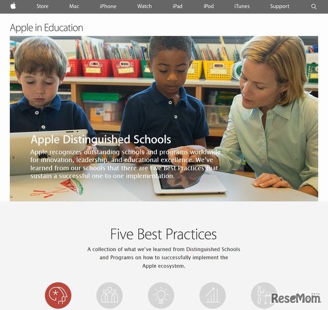 三重県松阪市立三雲中学校は、1人1台のタブレット端末(iPad)環境など理想的な学習環境を実現していることから、米アップルより「Apple Distinguished School 2014-2016」の対象校として認定された。