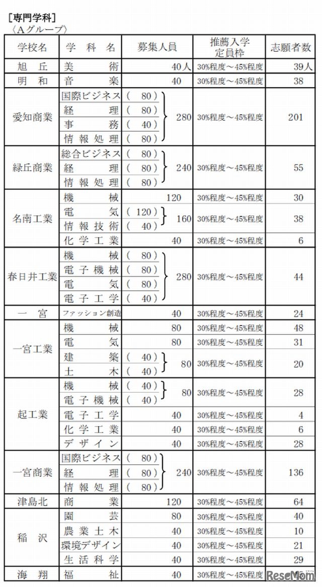 愛知県教育委員会は2月13日、推薦入試の志願状況を発表した。志願者数が多い学校は、普通科が刈谷北135人、専門学科が市立名古屋商業213人、総合学科が岡崎東169人となっている。