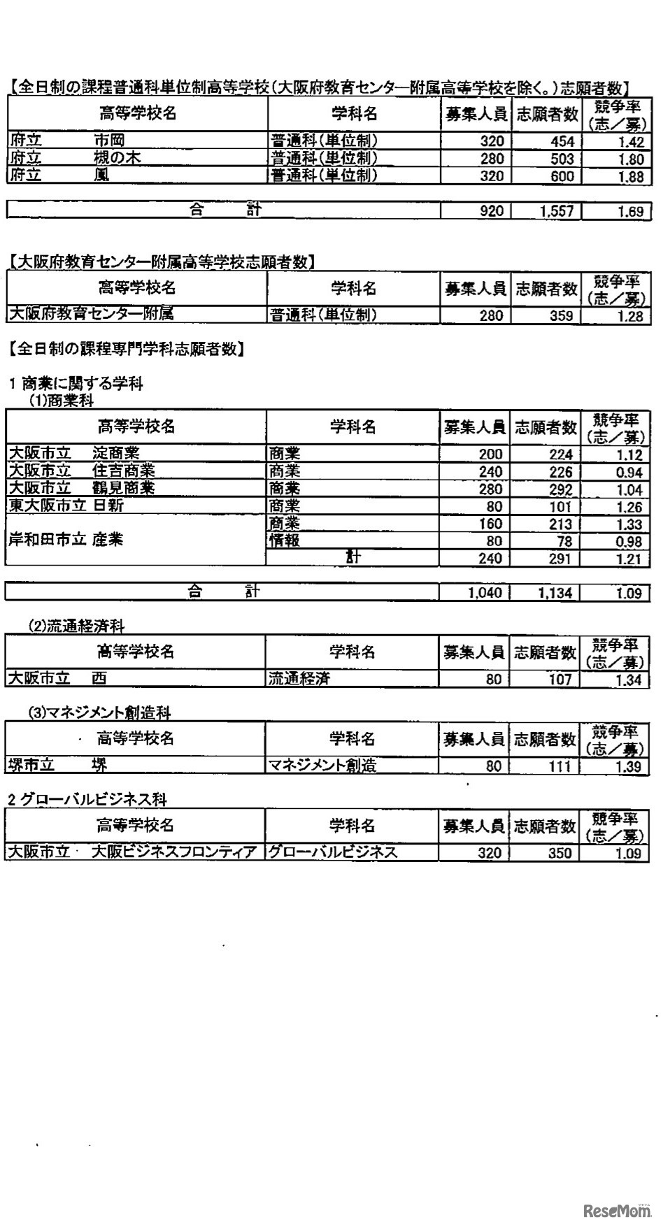大阪府教育委員会は2月17日16時、平成27年度大阪府立高等学校前期入学者選抜の願書締切時点での志願者数、倍率を発表した。普通科(全日制)の倍率は3.31倍、全日制の課程専門学科の合計は1.55倍で、文理学科は3.04倍となった。