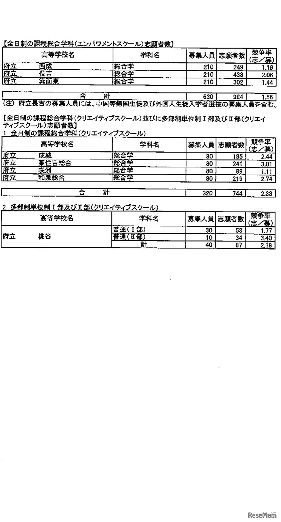 大阪府教育委員会は2月17日16時、平成27年度大阪府立高等学校前期入学者選抜の願書締切時点での志願者数、倍率を発表した。普通科(全日制)の倍率は3.31倍、全日制の課程専門学科の合計は1.55倍で、文理学科は3.04倍となった。