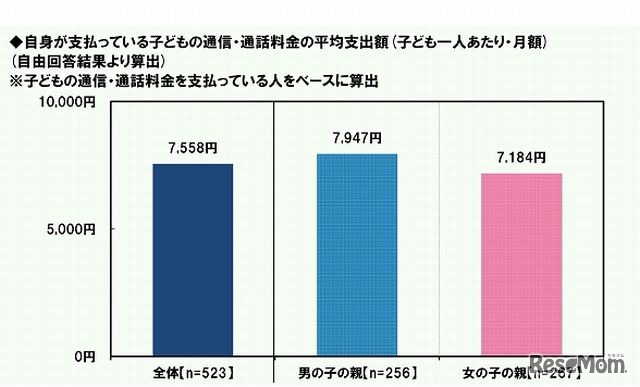 子どもの携帯・スマホの通信・通話料金を支払っている親は52.3%にのぼり、平均支出額は7,558円であることが、ソニー生命保険が3月13日に発表した「子どもの教育資金と学資保険に関する調査」より明らかになった。