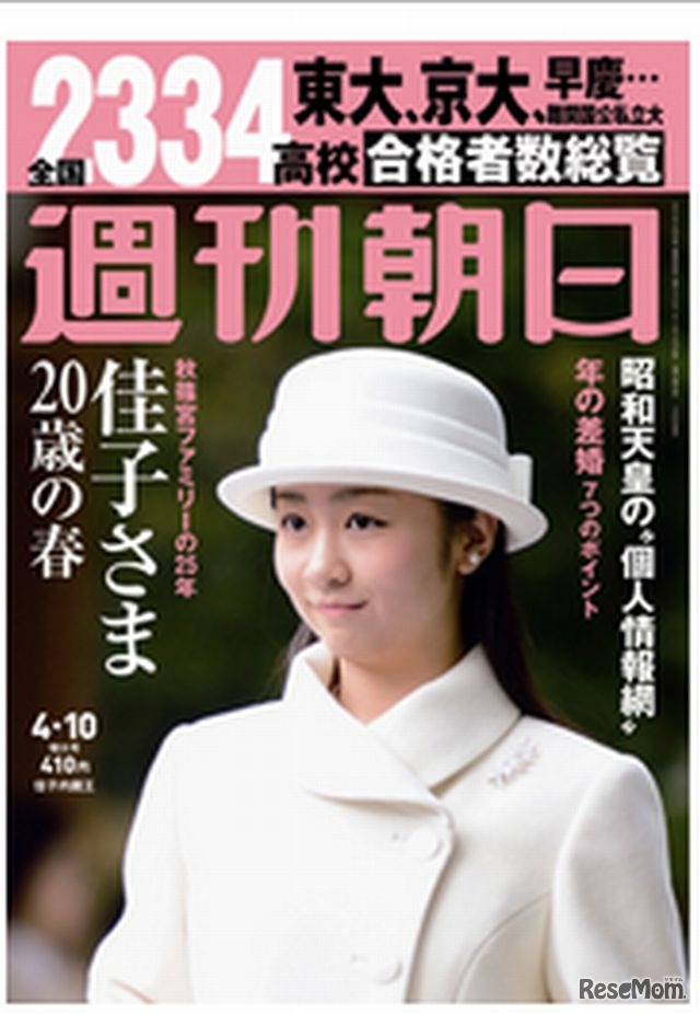 3月31日発売のサンデー毎日と週刊朝日は、全国2,300校以上の高校における東大、京大、早稲田大、慶應義塾大など有名大学合格者数を特集している。定価はどちらも410円(税込)。