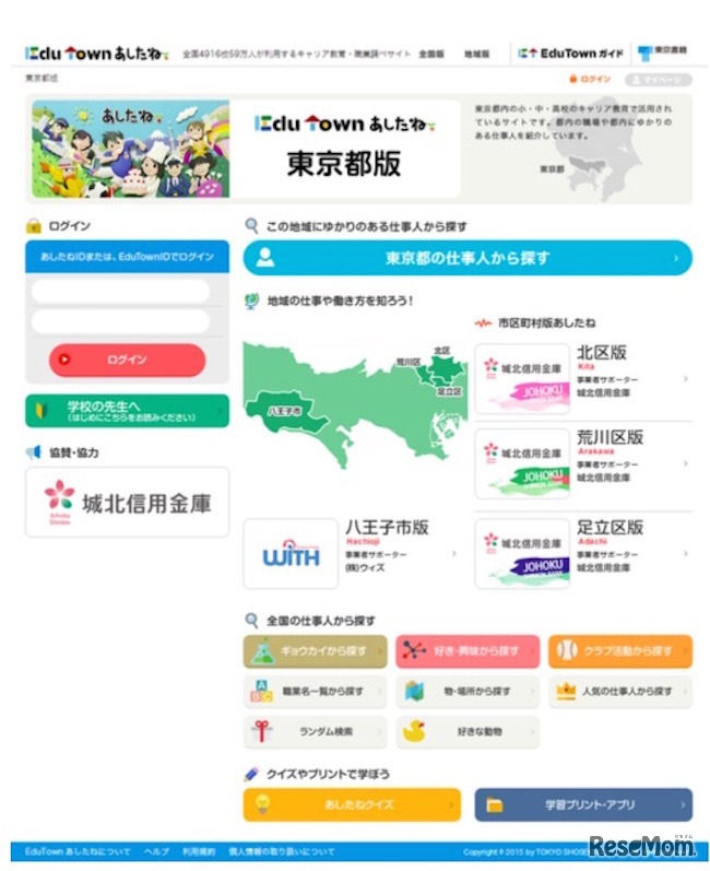 東京書籍が運営するキャリア教育支援Webサイト「EduTown(エデュタウン)あしたね」は、4月より東京都北区、荒川区、足立区、八王子市で働く仕事人のインタビューを掲載した「EduTownあしたね 東京都版」を新たに公開する。