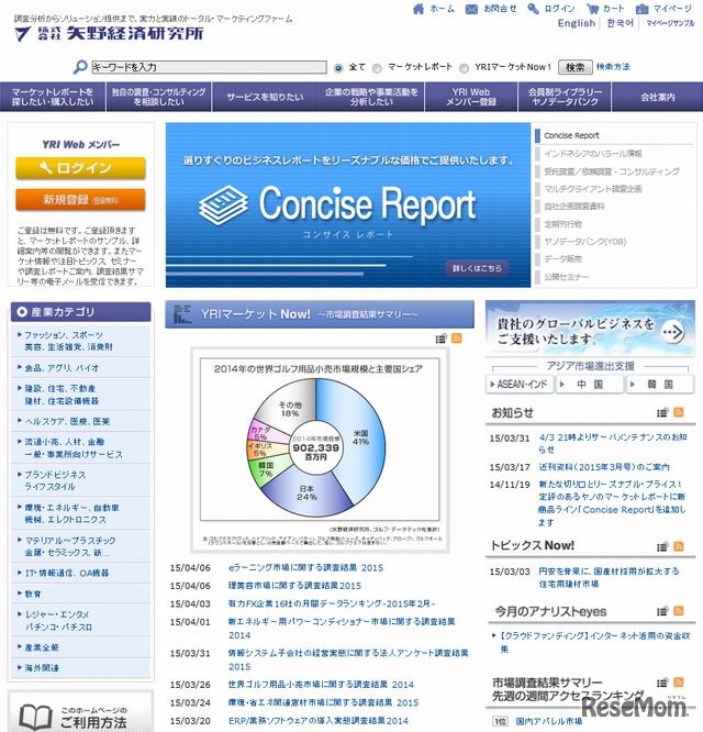 矢野経済研究所のホームページ